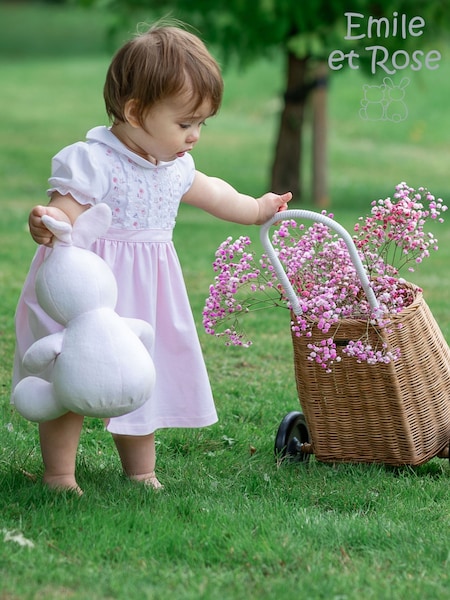 Emile Et Rose Pink Lucia Dress With Pleated Yoke & Embroidered Floral Scallop Collar