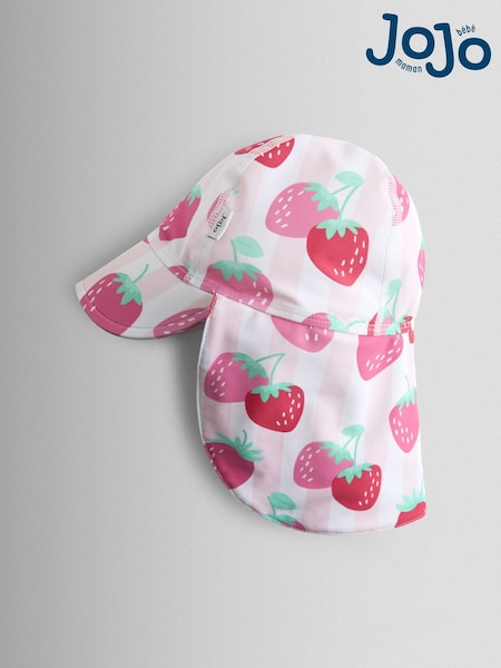 JoJo Maman Bébé Pink Strawberry Stripe UV Sun Protection Swim Hat