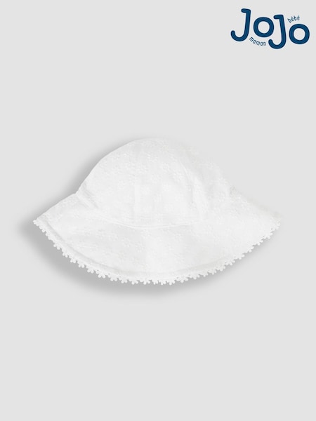 JoJo Maman Bébé White Cotton Embroidered Baby Hat