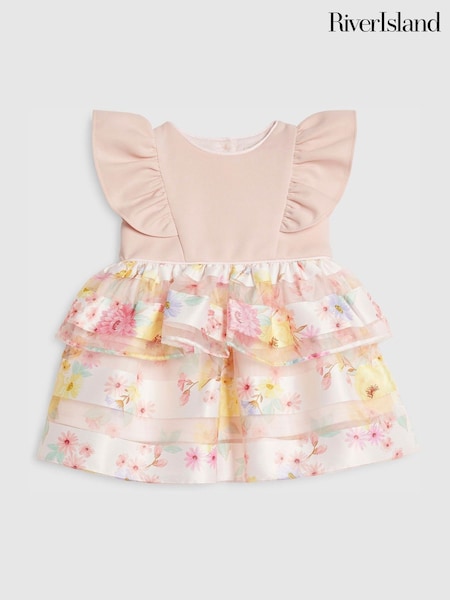 River Island Pink Long Sleeve Bow Collar Rib Dress