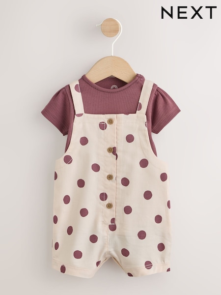 Burgundy/Ecru Spot Woven Baby Dungaree And Bodysuit 2 Piece Set (0mths-2yrs)