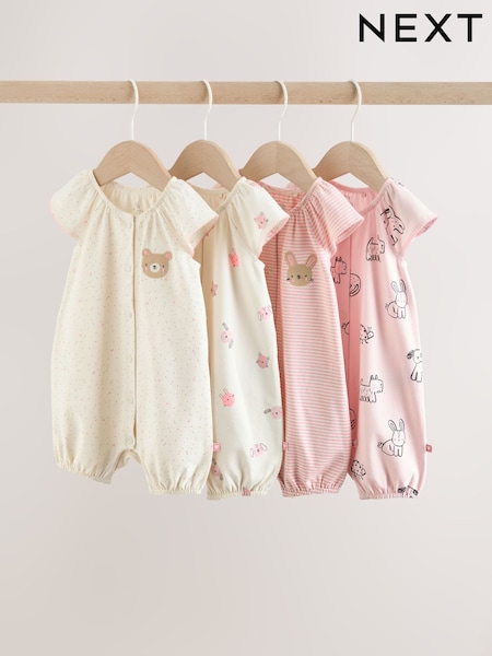 Pink Character All Over Printed Button Through Jersey Baby Rompers 4 Pack