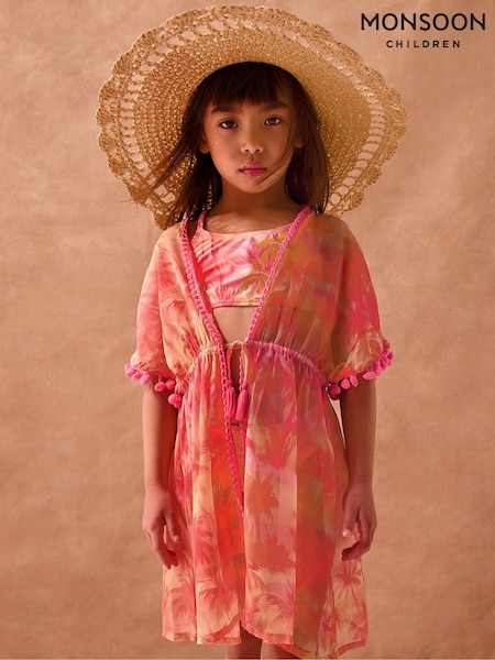 Monsoon Orange Palm Print Pom Pom Kaftan
