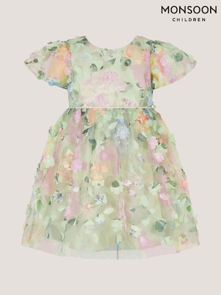 Monsoon Green Baby Nessa Floral Mesh Party Dress