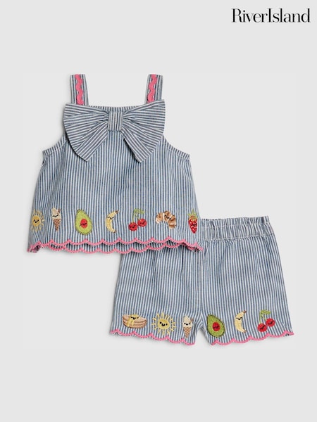 River Island Blue Stripe Fruits Cami Top & Shorts Set