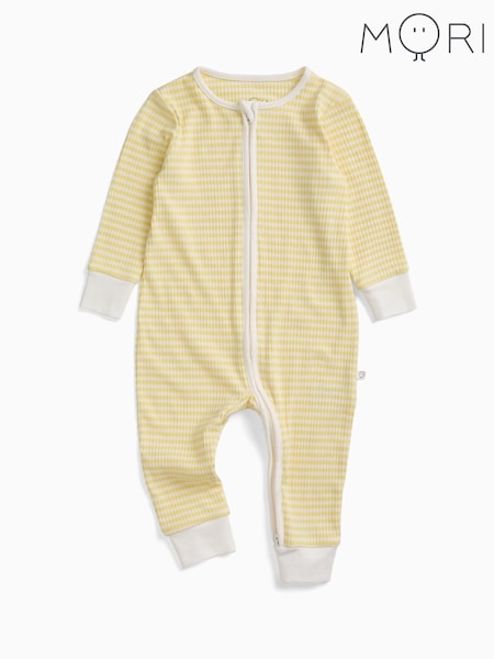 MORI Yellow Stripe Ribbed Supersoft Two Way Zip Up Sleepsuit