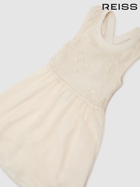 Reiss Neutral Gianna 9-13 yrs Floral-Embroidered Latticework Dress