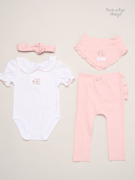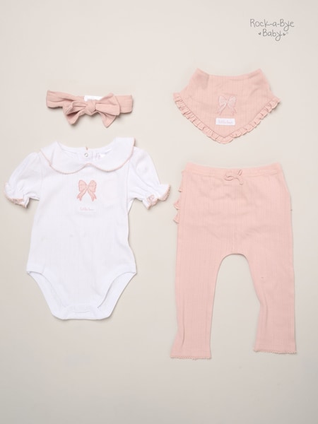 Rock-A-Bye Baby Boutique Pink - Bow Print Baby Outfit Set 4 Piece
