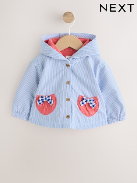 Blue Striped Strawberry Pocket Baby Hooded Jacket (0mths-2yrs)