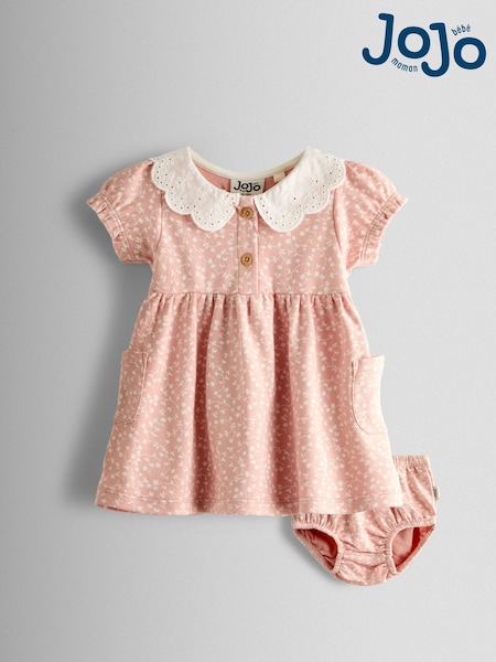 JoJo Maman Bébé Pink Broderie Dress and Bloomers Set