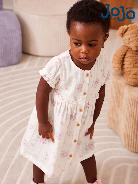 JoJo Maman Bébé Cream Floral Dress and Knicker Set