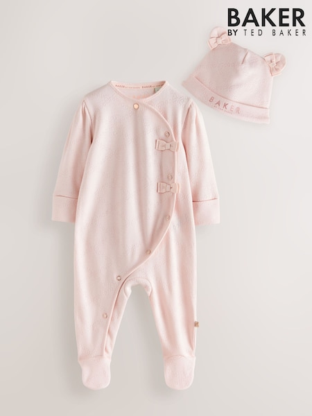 Baker by Ted Baker Pink Pointelle Wrap-Over Sleepsuit & Hat Set
