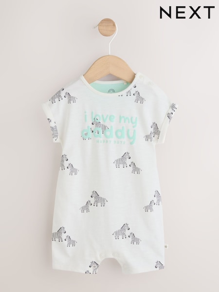 Mamas & Papas Cream 100% Cotton Safari Print Zip Shortie Romper