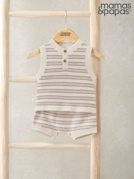 Mamas & Papas Brown Stripe Knitted Sleeveless Top And Shorts Set