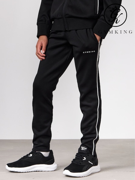 Gym King Black Core Piped Tapered Leg Joggers