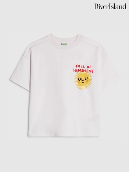 River Island White Abbie Rosie Oversized Sunshine T-Shirt