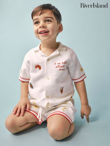 River Island Cream Abbie Rosie Crochet Shirt And Shorts Set