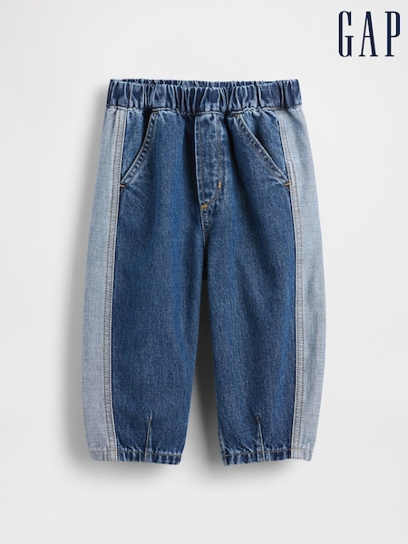 Gap Blue Two Tone Pull On Barrel Jeans (6mths-5yrs) (6mths-5yrs)