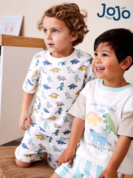 JoJo Maman Bébé Blue Dino Mix And Match 2 Pack Pyjamas