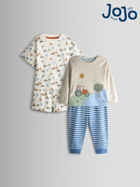 JoJo Maman Bébé Navy Tractor Mix And Match 2 Pack Pyjamas