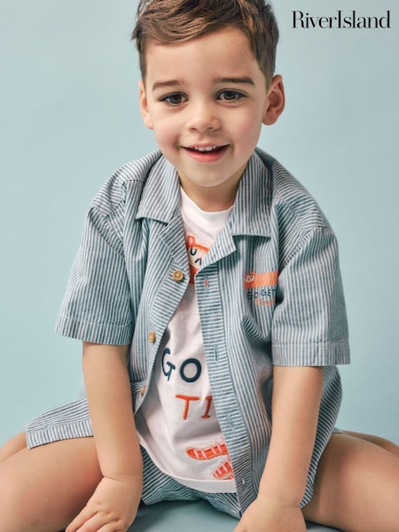 River Island Blue Tiger Stripe Shirt & Shorts Set 3 Piece