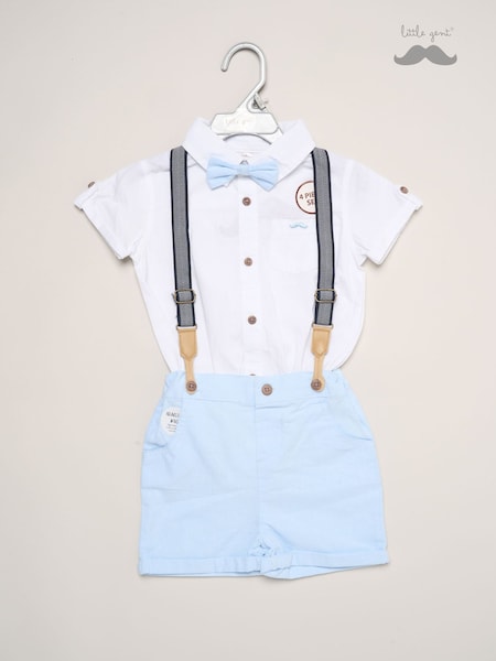 Little Gent Blue Shirt Shorts And Braces Outfit Set
