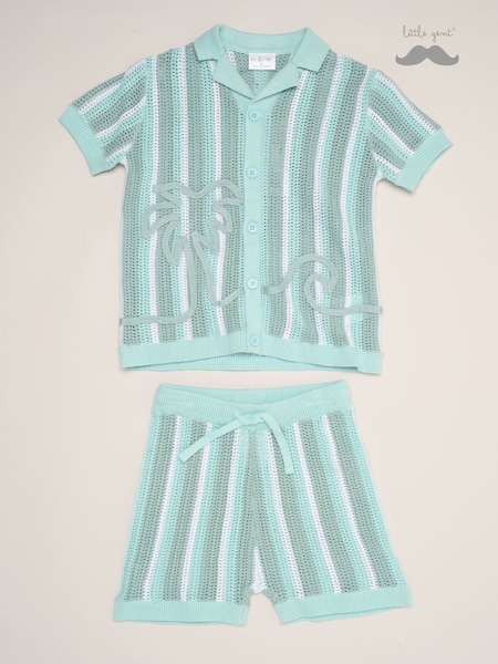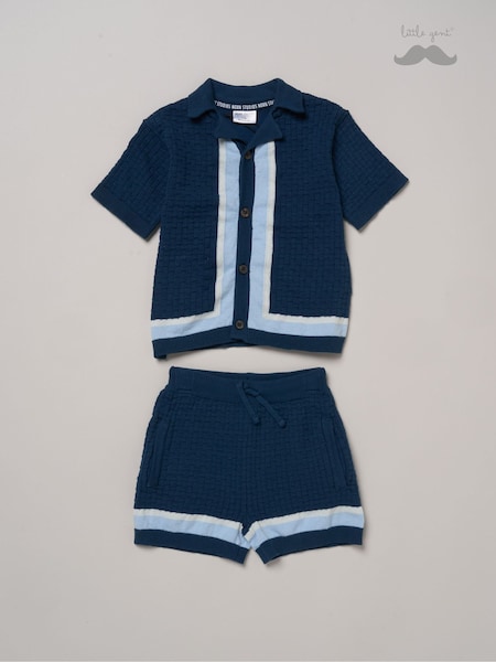 Little Gent Blue True Knit Resort Shirt and Shorts Set
