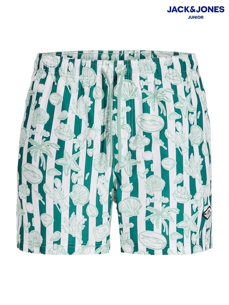 JACK & JONES JUNIOR Green Flamingo All-Over Print Swim Shorts