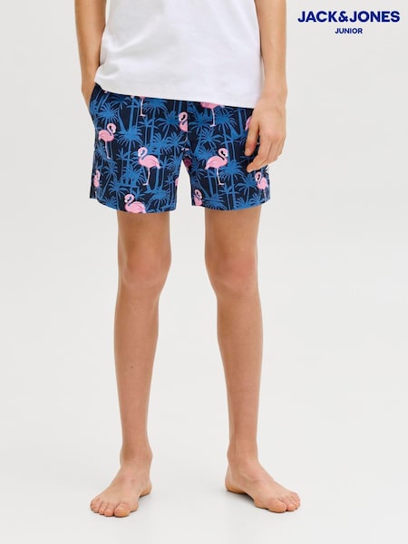 JACK & JONES JUNIOR Blue Flamingo All-Over Print Swim Shorts
