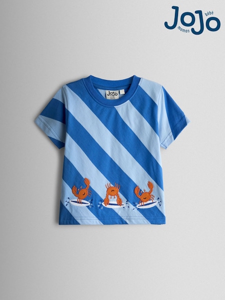 JoJo Maman Bébé Blue Surf's Up Crab Appliqué T-Shirt