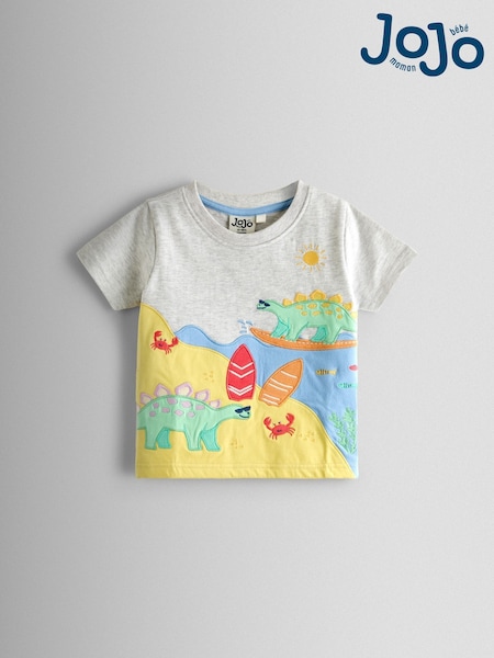 JoJo Maman Bébé Grey Dino Scene Appliqué T-Shirt