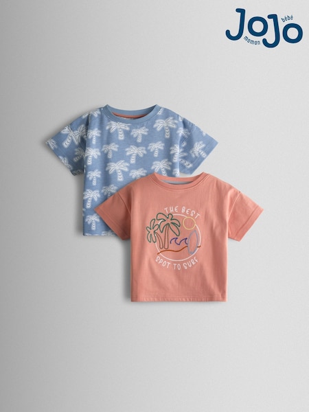 JoJo Maman Bébé Coral & Light Blue Palm 2-Pack Surf Applique & Printed T-Shirts