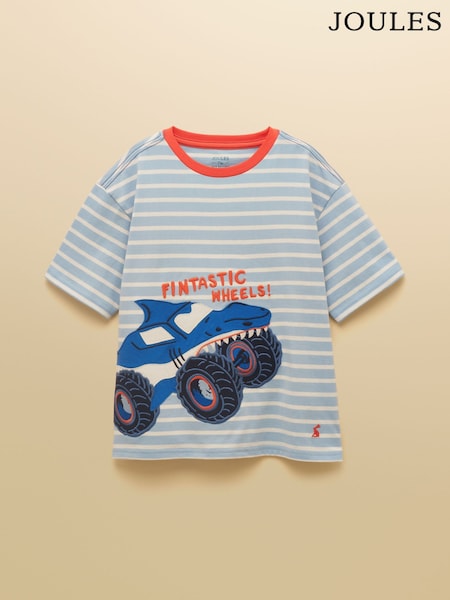 Joules Boys' Archie Blue & White Applique Graphic T-Shirt