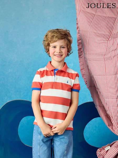 Joules Boys' Woody Orange & White Striped Cotton Polo Shirt