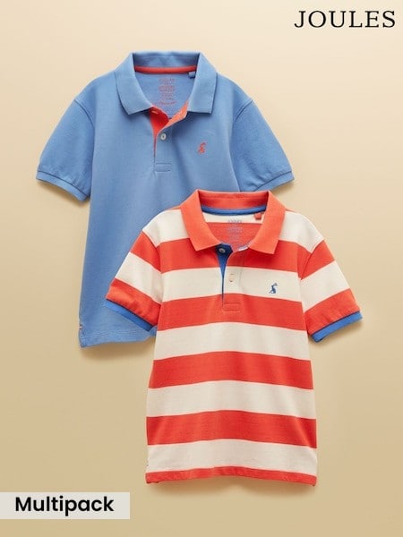 Joules Boys' Woody Blue & Orange Short Sleeve Polo Shirts 2 Pack