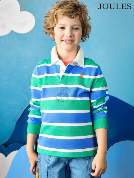 Joules Boys' Green & Blue Long Sleeve Rugby Shirt