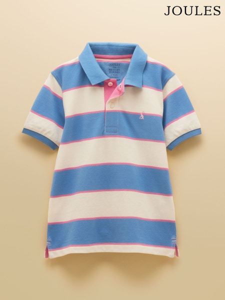 Joules Boys' Woody Pink Striped Cotton Polo Shirt