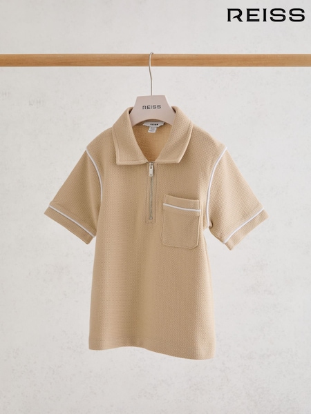 Reiss Oatmeal Percy 13-14 yrs Cotton Textured-Knit Half-Zip Polo Shirt