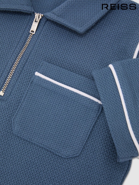 Reiss Blue Percy 9-13 yrs Cotton Textured-Knit Half-Zip Polo Shirt