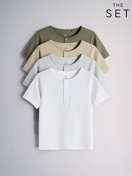 The Set 4 Pack Short Sleeve Cotton Henley T-Shirt Green/White