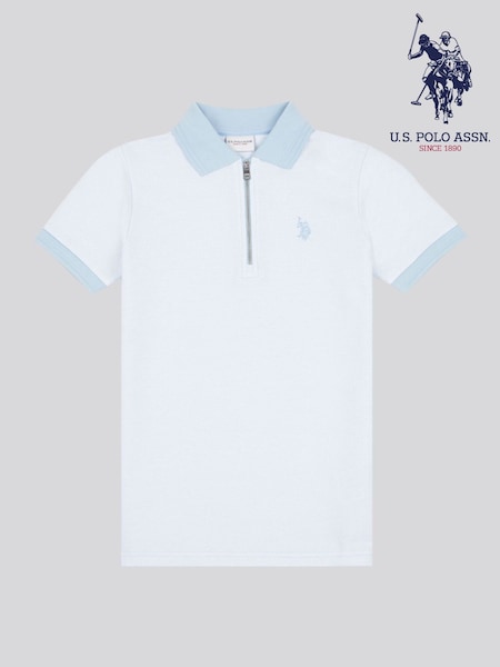 U.S. Polo Assn White Smart Two Tone Zip Polo Shirt
