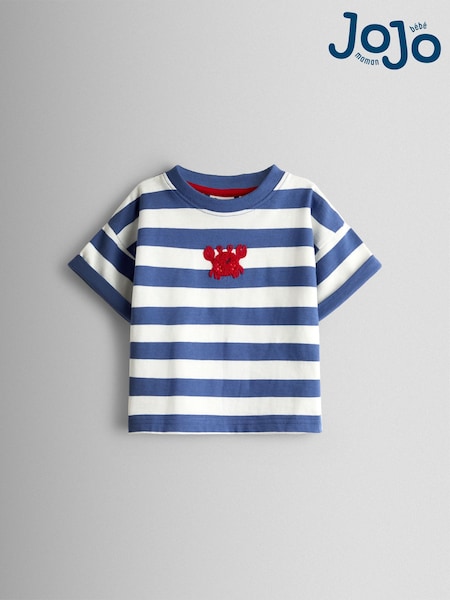 JoJo Maman Bébé Navy Blue Stripe Crab Bag Applique T-Shirt