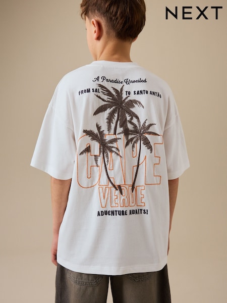 White Palm Embroidery Short Sleeve Graphic T-Shirt (3-16yrs)