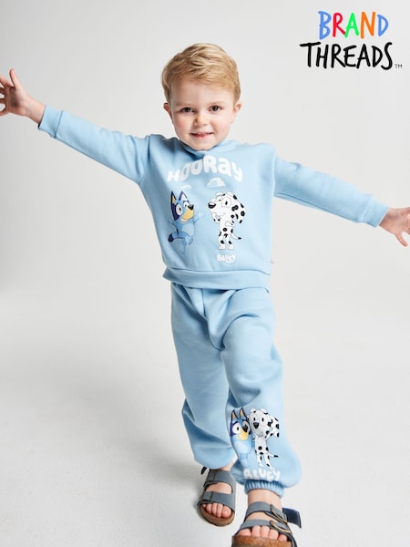 Brand Threads Blue Unisex Daywear 100% Cotton Joggers Set