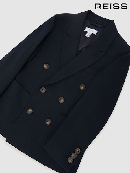 Reiss Navy Belmont J 13-14 yrs Double-Breasted Textured Blazer With Wool