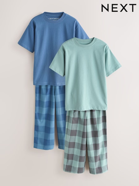 Blue/Green Check Short Sleeve Woven Long Pyjamas 2 Pack (3-16yrs)