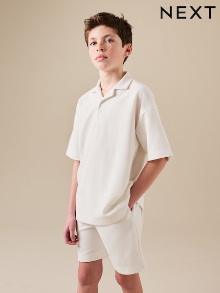 Ecru White Short Sleeve Textured Polo Shirt and Shorts Set (3-16yrs)