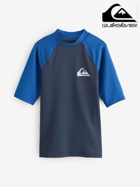 Quiksilver Blue Everyday UPF50 Short Sleeve Logo Rash Vest