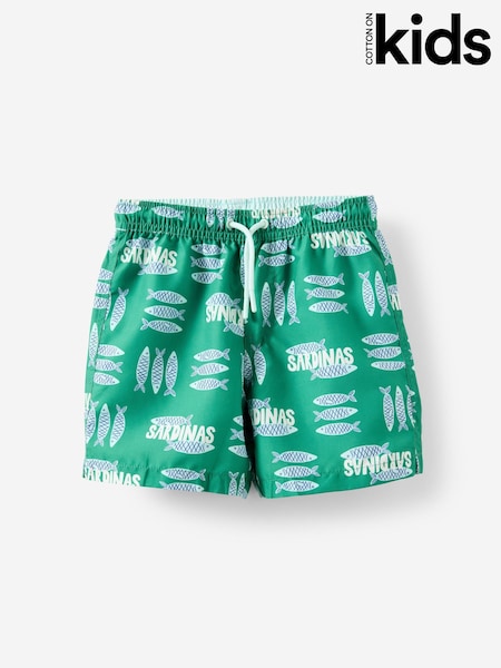 Cotton On Green / Sardines Print Bailey Swim Shorts