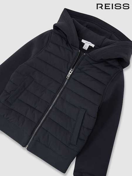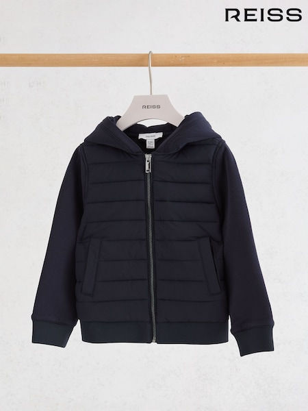Reiss Navy Taylor Hybrid Zip-Through Hooded Jacket